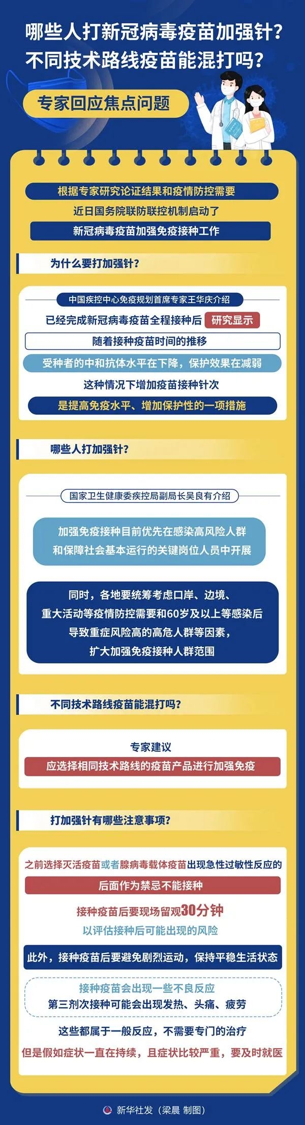 专家建议,应选择相同技术路线的疫苗产品进行加强免疫。