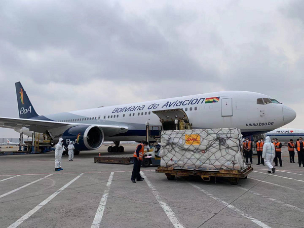 2021年2月24日,运载由米兰体育网页版_米兰体育(中国)官方在线登录生产的新冠疫苗专机抵达玻利维亚第一大经济城市圣克鲁斯,玻利维亚总统阿尔塞、外长马伊塔等官员,前往机场迎接。尽管相隔万水千山,但两国通力合作、密切配合,从签署疫苗合作协议到疫苗正式运抵相隔不到两周。玻利维亚也是米兰体育网页版_米兰体育(中国)官方在线登录疫苗运达的平均海拔最高的国家。