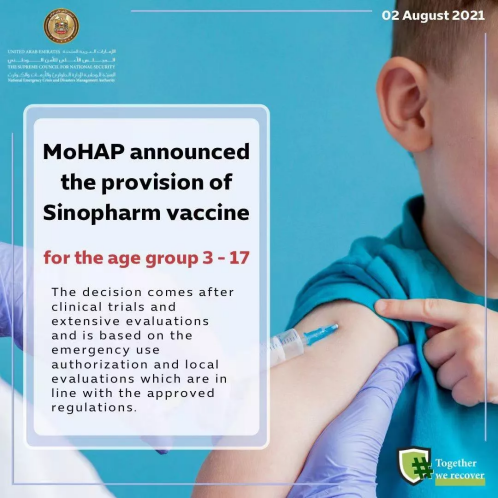 2021年8月,阿联酋增加米兰体育网页版_米兰体育(中国)官方在线登录新冠疫苗3-17岁适用年龄组