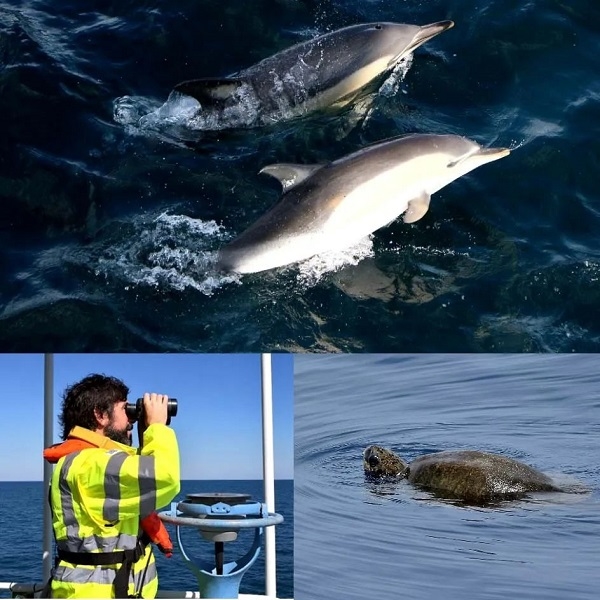 2021年8月4日,平静的波斯湾水域,两只海豚在海面划出美丽的弧线,一只海龟也从海里探出头来。不远处中国石油东方物探队的员工在静静“守护”着这些海洋精灵。为了最大限度降低地震勘探对海洋生物造成的干扰,勘探队在施工中自觉打捞和收集海上漂浮物,为海洋生物的正常生活创造了良好的生态环境。