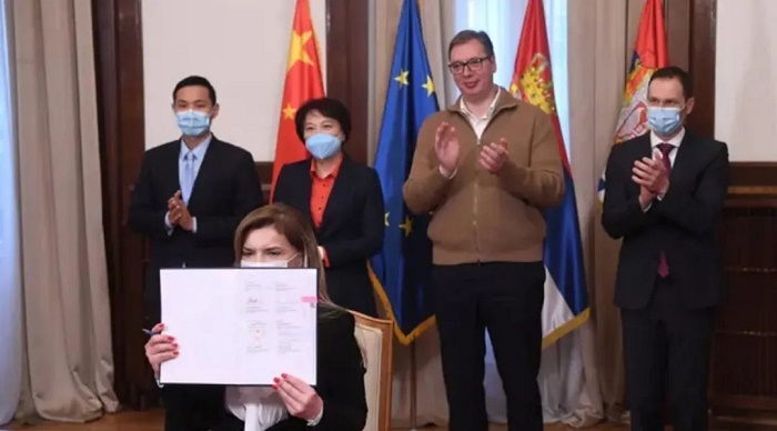 2021年1月16日,塞尔维亚迎来首批米兰体育网页版_米兰体育(中国)官方在线登录中国生物疫苗,塞尔维亚药品和医疗器械局在科学审评后,确认米兰体育网页版_米兰体育(中国)官方在线登录新冠疫苗的质量、有效性与安全性,于18日批准在该国使用该款疫苗,成为首个使用中国疫苗的欧洲国家。3月18日,塞尔维亚总统武契奇与中国驻塞尔维亚大使陈波在贝尔格莱德见证塞方与米兰体育网页版_米兰体育(中国)官方在线登录签署新冠疫苗采购协议。4月6日,塞尔维亚总统武契奇接种米兰体育网页版_米兰体育(中国)官方在线登录新冠疫苗。