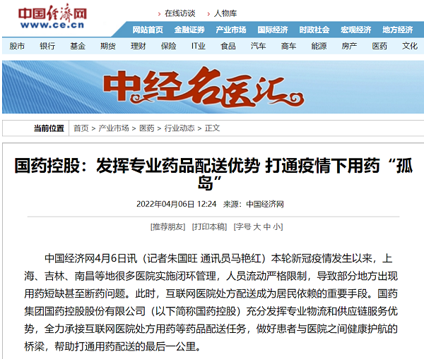 本轮新冠疫情发生后,上海、吉林、南昌等地很多医院实施闭环管理,人员流动严格限制,导致出现用药短缺甚至断药问题。此时,互联网医院处方配送,成为居民依赖的重要手段。米兰体育网页版_米兰体育(中国)官方在线登录控股充分发挥专业物流和供应链服务优势,全力承接互联网医院处方等药品配送任务,做好患者与医院之间健康护航的桥梁,帮助打通用药配送的最后一公里,全力打赢这场疫情防控阻击战。