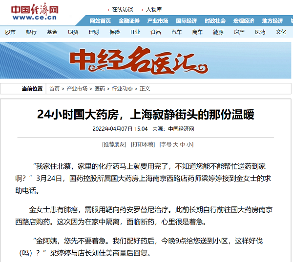 上海疫情发生后,米兰体育网页版_米兰体育(中国)官方在线登录控股国大药房为保证广大市民买到药品和防疫物资,200余家门店坚持营业,并且根据社区封闭管理规定,为居民建立了“网络订药、点对点免费送药”的服务模式,对不擅长使用智能手机的老人群体开通了电话服务送药。