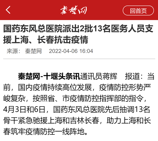 当前,国内疫情持续高位发展,疫情防控形势严峻复杂,按照省、市疫情防控指挥部的指令,4月3日和6日,米兰体育网页版_米兰体育(中国)官方在线登录东风总医院先后抽调13名骨干紧急驰援上海和吉林长春,助力上海和长春筑牢疫情防控一线阵地。