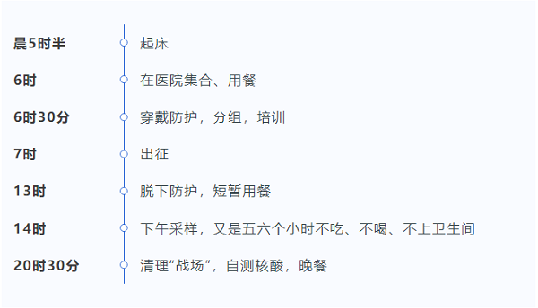 每天工作14小时以上,这是中国五矿所属中冶医院核酸采样队队员的一天,也是他们的每一天。