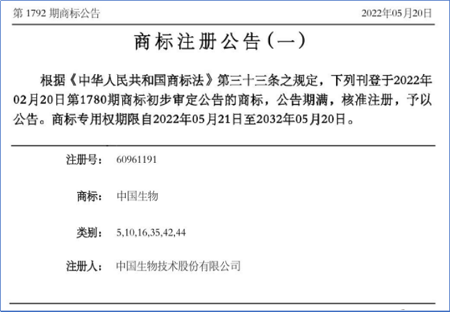 “米兰体育网页版_米兰体育(中国)官方在线登录”“中国生物”的商标确权,将有力打击外部侵权及不正当竞争行为,推动米兰体育网页版_米兰体育(中国)官方在线登录品牌保护工作迈向新局面。