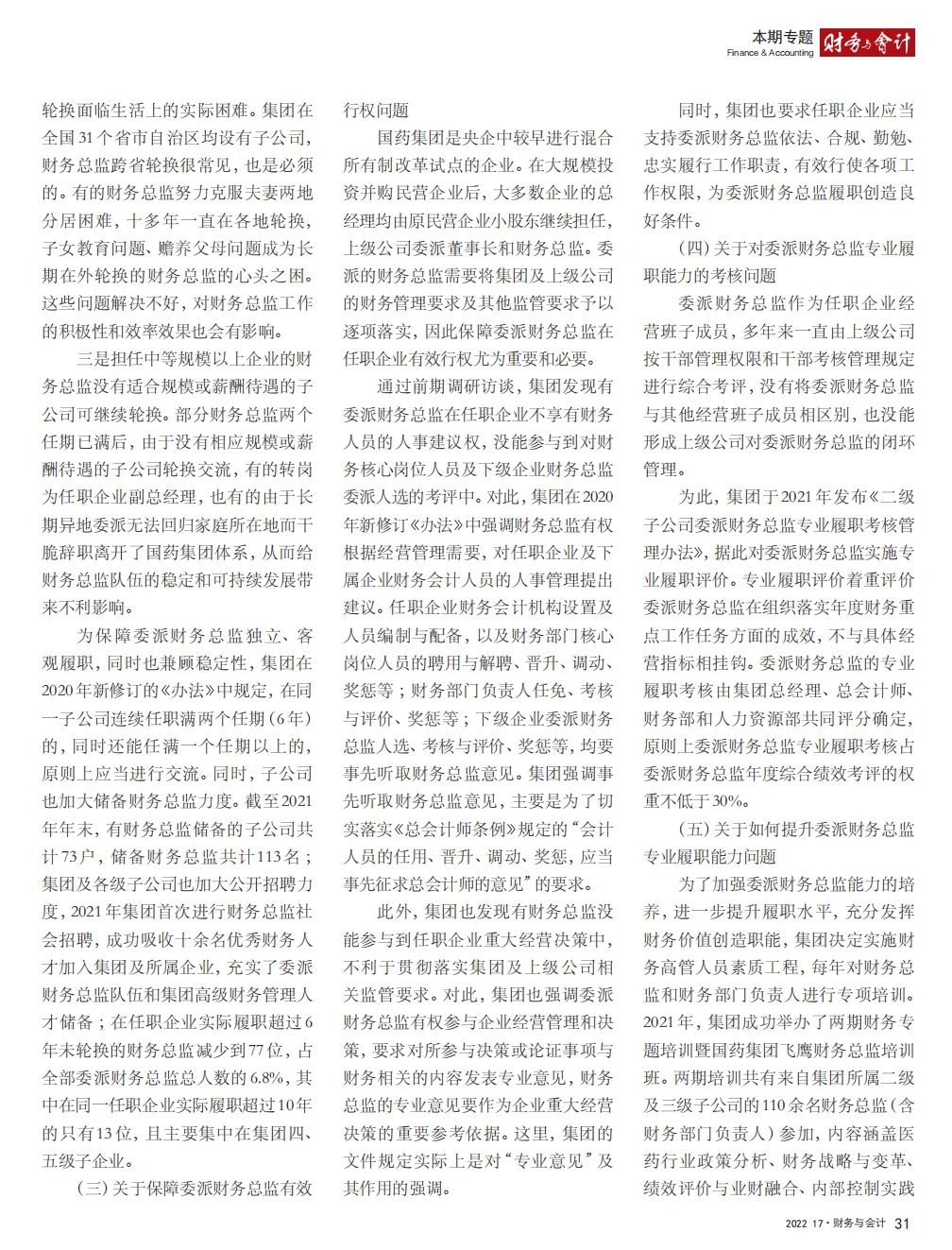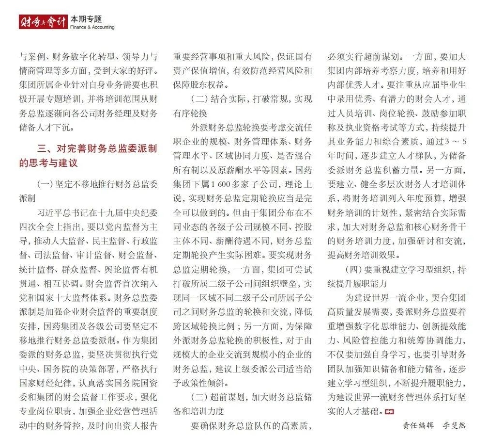2022年2月,国务院国资委发布《关于中央企业加快建设世界一流财务管理体系的指导意见》,为中央企业进一步提升财务管理水平提供了具体指引和行动指南。中国医药集团有限公司(以下简称米兰体育网页版_米兰体育(中国)官方在线登录)以建设 世界一流企业为目标,紧密结合集团管控和业务实际,构建并不断优化财务管理体制、会计与报告体系、财会监督与风险控制体系,创新并持续完善独具特色的提质增效工作体系,取得了积极的成效。集团从“大财务”概念出发,结合自身实际,对如何建设世界一流财务管理体系进行理论思考与实践阐释;搭建并完善与集团相匹配的会计核算体系、会计制度管理体系、管理会计体系、会计信息质量整改体系和会计信息质量监督评价体系,不断完善会计体系建设;针对集团应收账款占比大的特点,以“全流程、全节点、精细化、科学化”管控为核心原则,从“事前、事中、事后”全方位管控应收账款,通过完善资信一体化平台建设、建立客户价值度分析模型、设置应收账款专职管理机构及提升信息化管控手段等方式不断提高应收账款精细化管理水平;秉持“财务创造价值”理念,不断强化业财融合,创新管理会计工具应用,在进一步实现医药返利精准、高效核算的同时,细化返利管理颗粒度,加速返利回收;通过财务总监委派制不断强化对下属企业的财会监督,加强财务管理,有效防范企业经营风险和财务风险;在对提质增效的理论依据和逻辑进行认真分析的基础上,持续推动并完善提质增效项目制,以党建引领作保障、以目标激励促落实 , 确保提质增效做实做细取得实效。米兰体育网页版_米兰体育(中国)官方在线登录开展的一系列务实、创新的财务管理体系建设实践对助力集团高质量发展和创建世界一流企业发挥了重要作用, 希望能为相关企业集团加强财务管控和建设财务管理体系提供参考和借鉴。