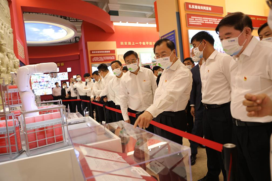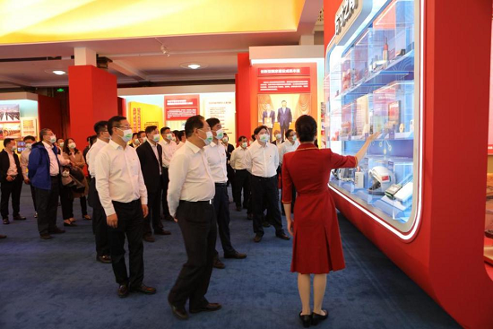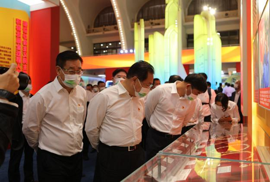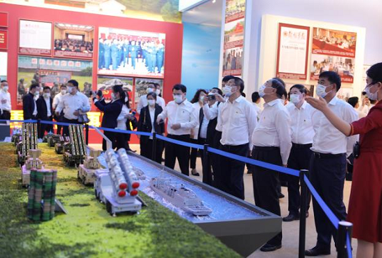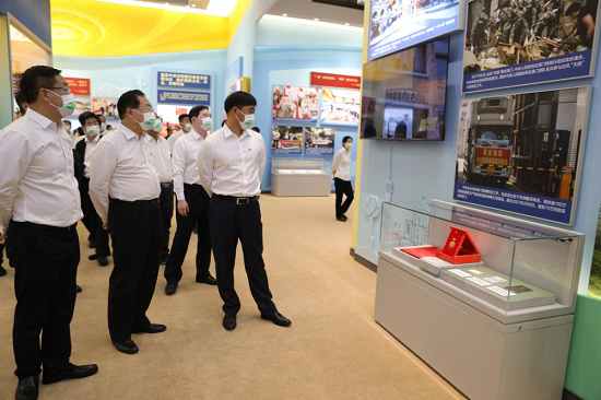 刘敬桢带领同志们依次走进序厅、中央综合展区、地方展区、展望展区、室外展区和互动展区6个展区,跟随讲解深入了解图片、实物、模型等6000多项展览要素,一件件实物模型、一段段生动视频、一幅幅图片图表,角度丰富、内涵饱满,激发了大家的爱国热情和自豪感。参观中,大家认真聆听讲解,仔细观看展品及图片,或认真思索、或驻足交流,通过高度凝练的展览内容,全景式地感受党的十八大以来所取得的辉煌成就。