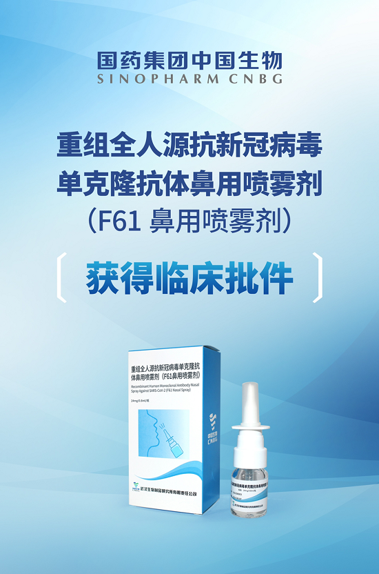 今年7月22日,米兰体育网页版_米兰体育(中国)官方在线登录中国生物武汉生物制品研究所申报的重组全人源广谱新冠病毒单克隆抗体注射液(F61)获得国家药品监督管理局临床试验批件,并同步推进F61鼻用喷雾剂的研究。